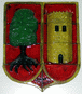 Escudo partido y entado: en el primer cuartel de oro, olma arrancada y a su color; en el segundo, de gules, torre de oro mazonada de sable y aclarada de azur.