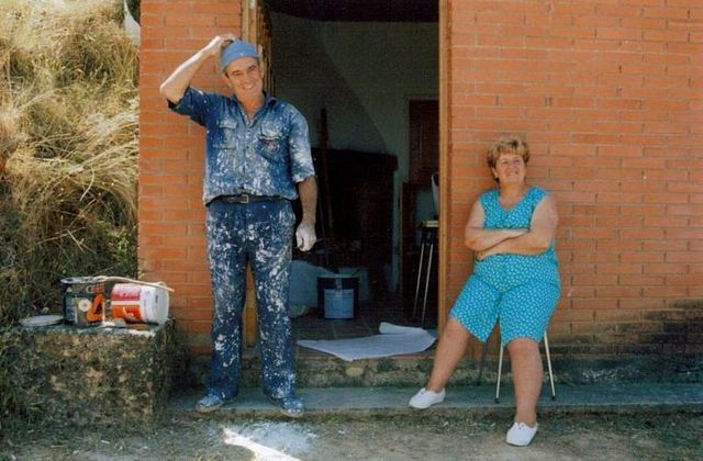 images -- Eleuterio y Luisi pintando el merendero, Agosto 2002.