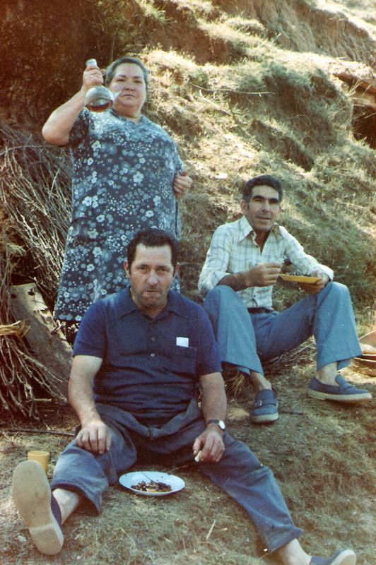 images -- Los hijos de la Tia Vicenta, Elu, Martín y Juanito, ...reponiendo fuerzas en la bodega . sin fecha.. - Cedida por Jose Ignacio Barbadillo -