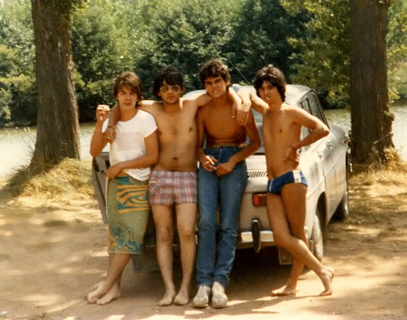 images -- Armando, Carlos, Reylnaldo é Ivan en un día de baño en La Presa de el Molino. Años de 1980 a 1985 - Cedida por Ivan del Pozo -