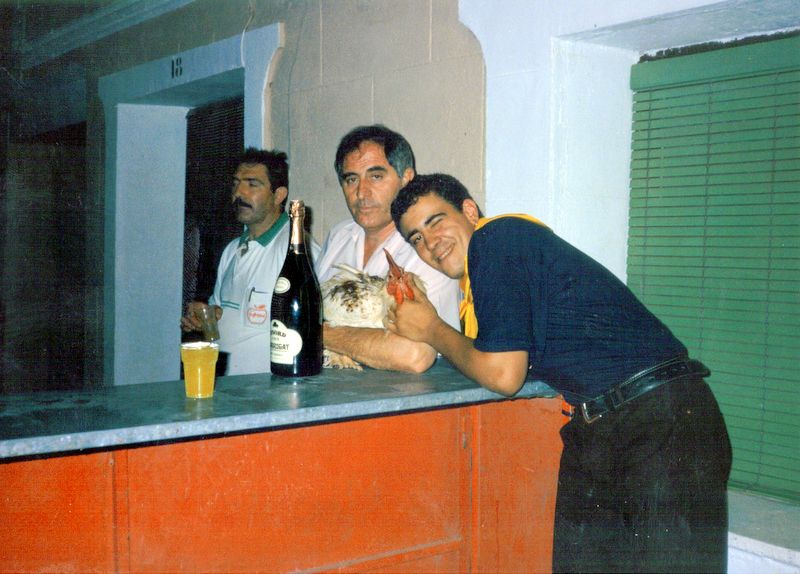 images -- Daniel ( Palas ), Daniel y Virgilio con la gallina...para poner orden, jeje !!, fiestas de San Roque de 1993, cedida por cortesia de Belen y Daniel Rodrigo